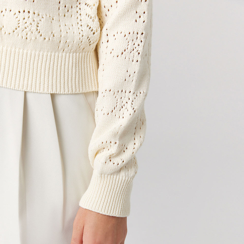 Autumn and Winter Cotton Cardigan Women's Simple Milky White Sweater Hollow Out Striped Slim Knitted Sweater Cardigan for Women