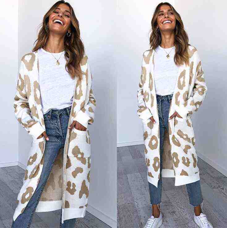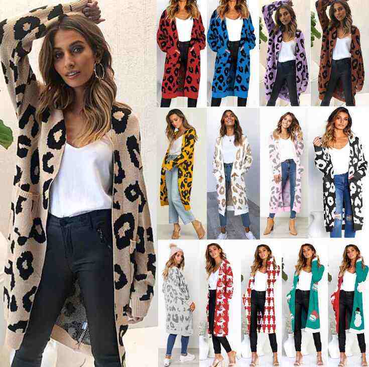 Autunno e di inverno del leopardo caldo giacca di maglia cardigan delle donne del maglione di modo delle donne caldo del modello 14 di colore