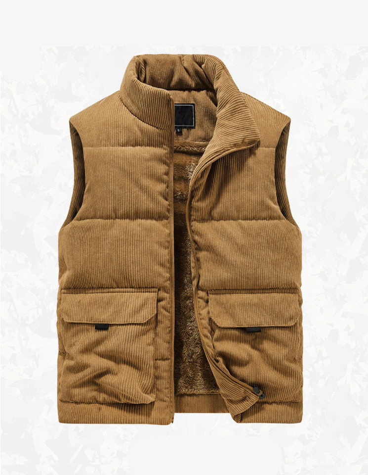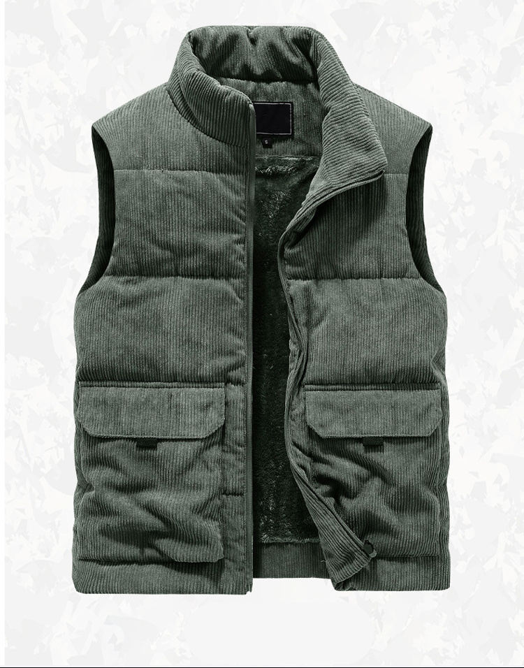 Autumn and Winter Men's Corduroy Waistcoat with Thick Pile Collar Large Size Cotton-padded Vest Windproof Breathable Jacket