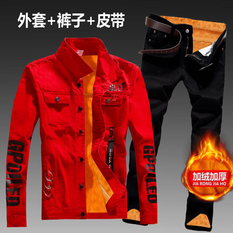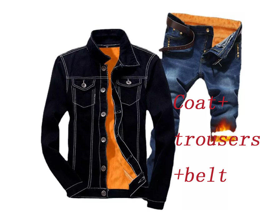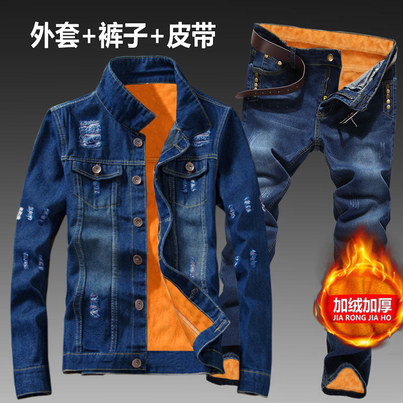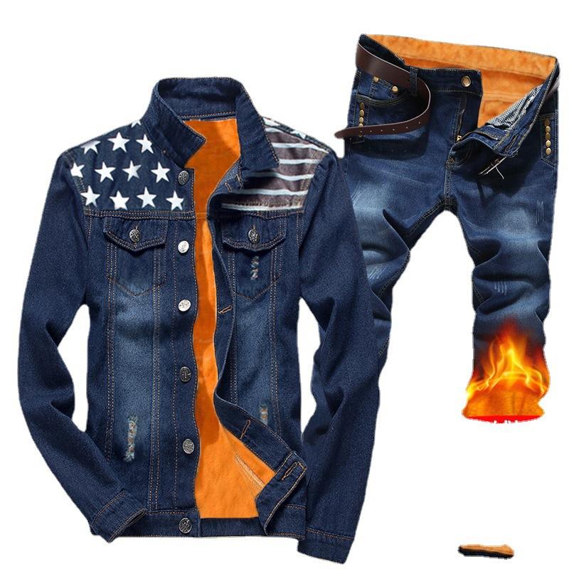 Giacca in Denim da uomo autunno e inverno con giacca spessa in velluto Top Casual stile coreano pantalone completo 7-30 anni