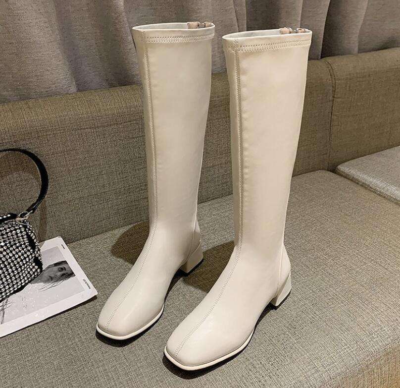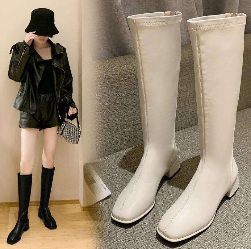 Autunno e inverno nuovi stivali lunghi in pelle con cerniera posteriore di grandi dimensioni stivali alti tacchi alti spessi tacchi bassi stivali da cavaliere per le donne