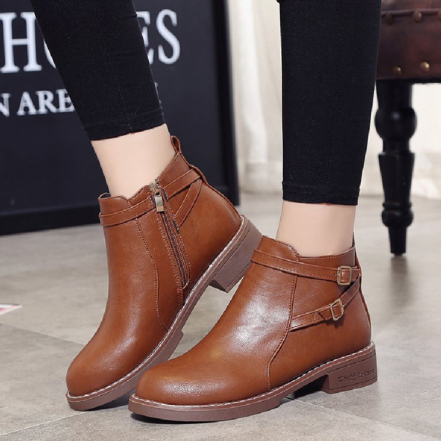 Nuovi Stivaletti da Donna in Pelle con Tacco Basso e Cinturino per Autunno e Inverno, Taglie Grandi, Vendita all'Ingrosso