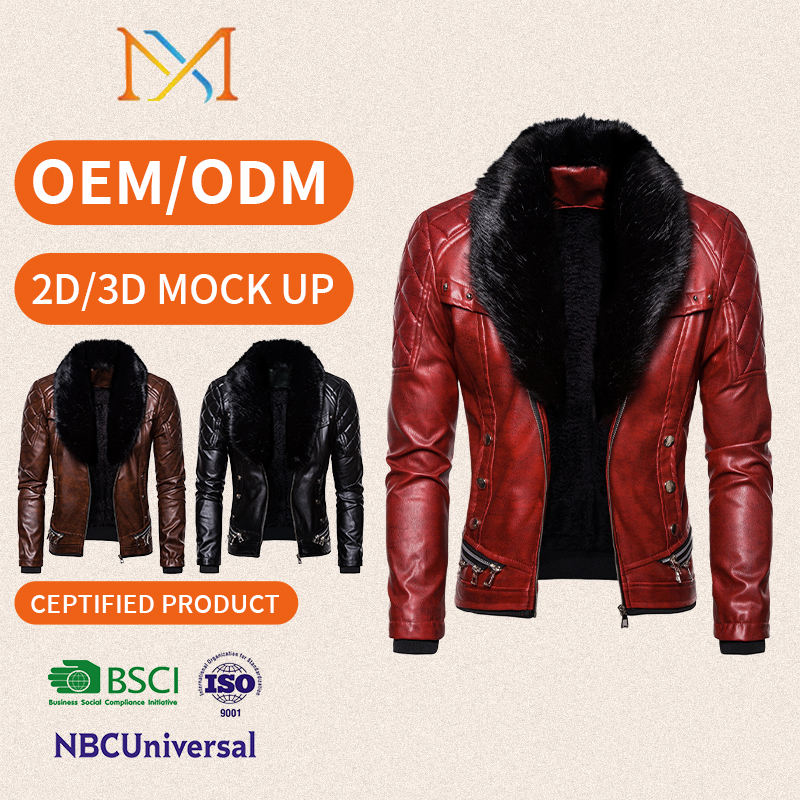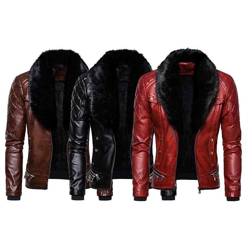 Autunno e inverno nuovo stile stile stile tinta unita giacca e giacca in pelle da uomo con collo di pelliccia di dimensioni europee
