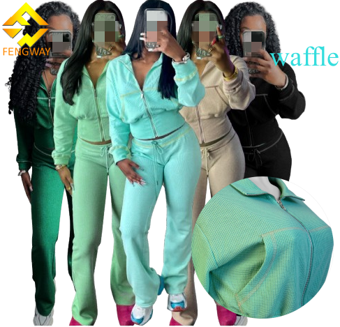 Autumn and Winter New Waffle Knit Zipper Sweatshirts With Flared Pants Long Sleeve Sweatshirt and Trousers Suit for Women