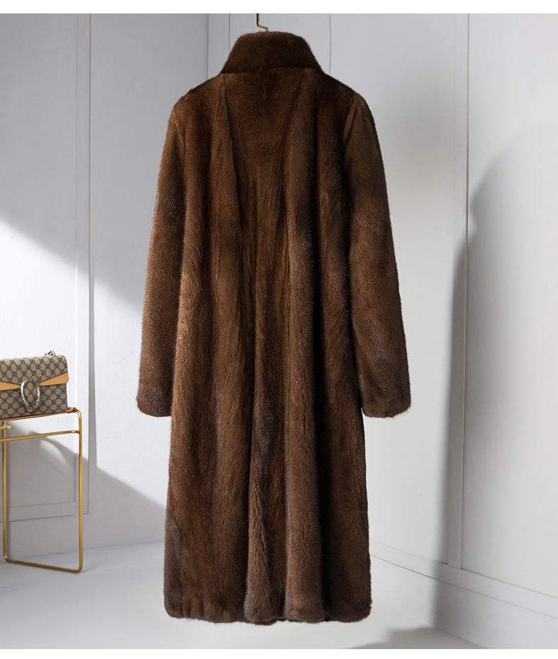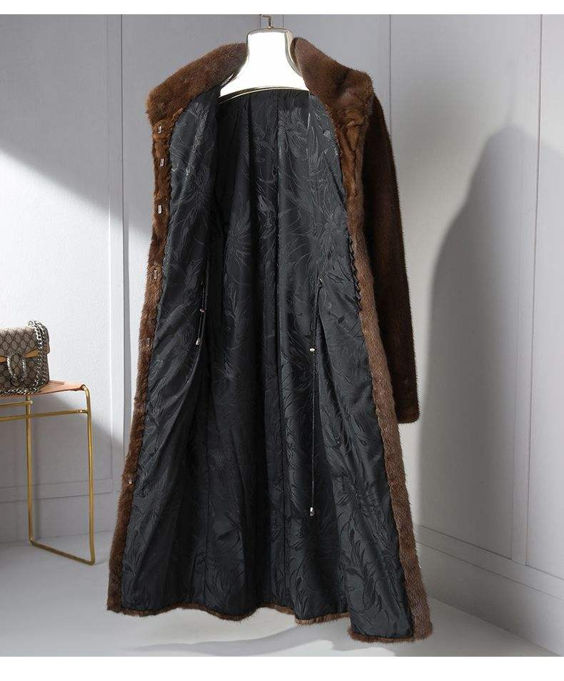 Cappotto Lungo in Vera Pelliccia di Visone Marrone per Donna, Autunno e Inverno, Impermeabile con Imbottitura in Cotone e Chiusura a Cerniera