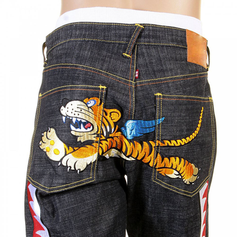 Autunno/inverno moda personalizzata Casual primavera e autunno Vintage Patch panno ricamato bordo grezzo Jeans pantaloni da uomo Jogger