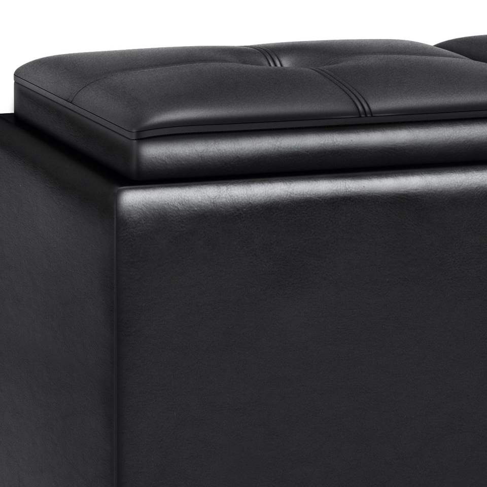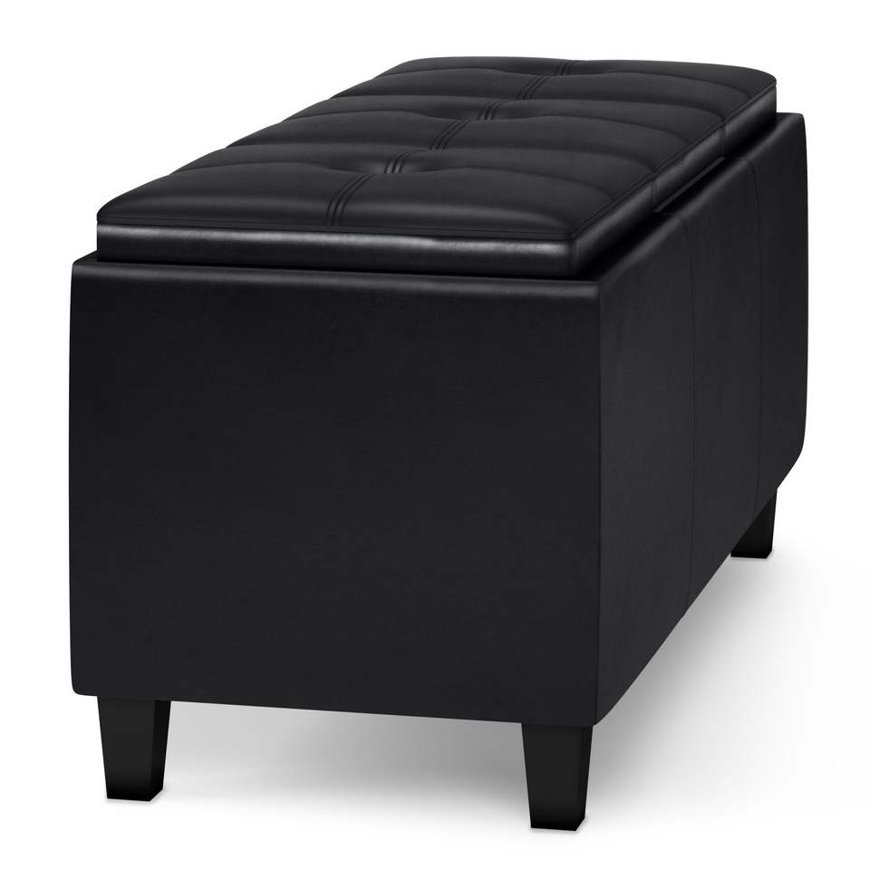 Avalon Midnight Black Tray Storage Ottoman with Lift-Up Lids Stools & Ottomans