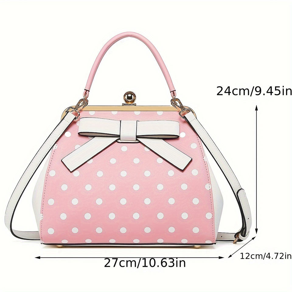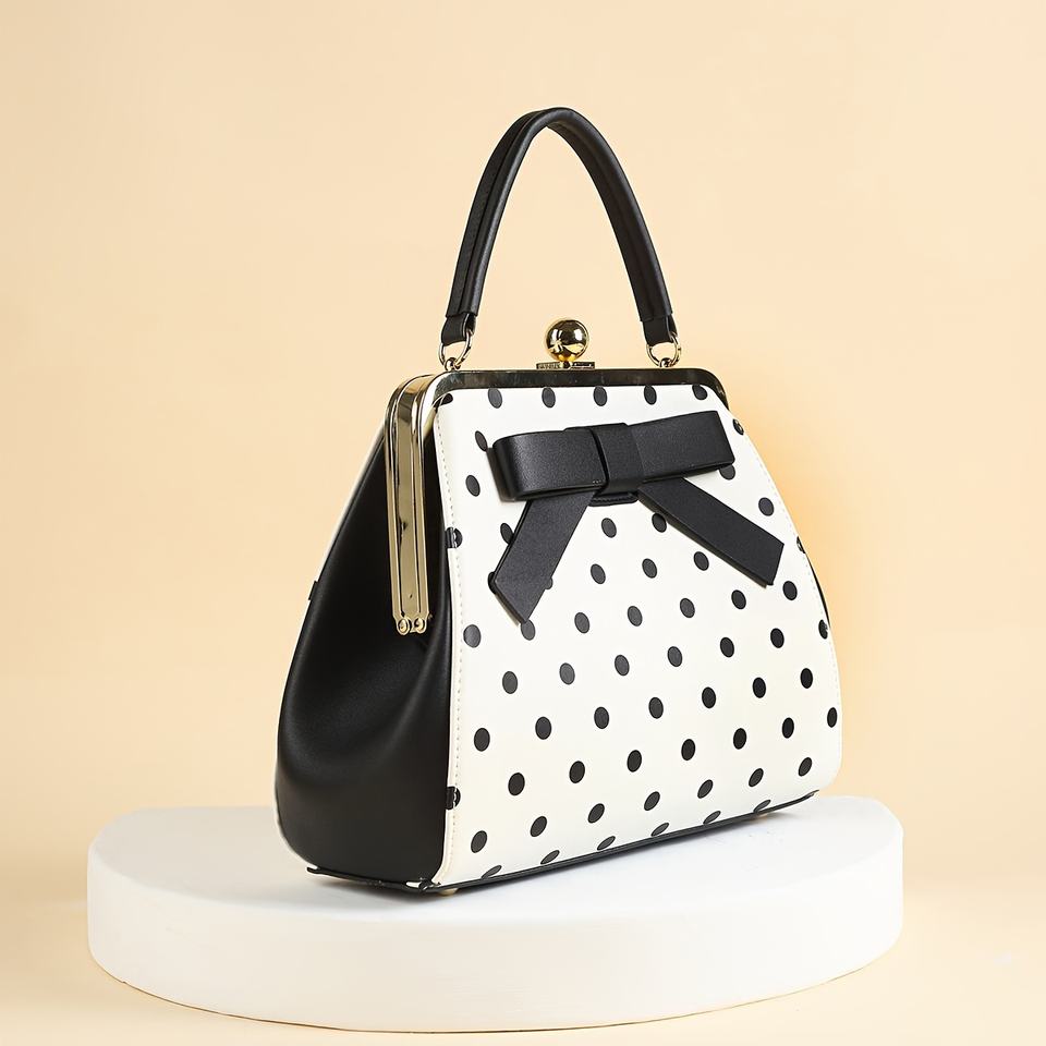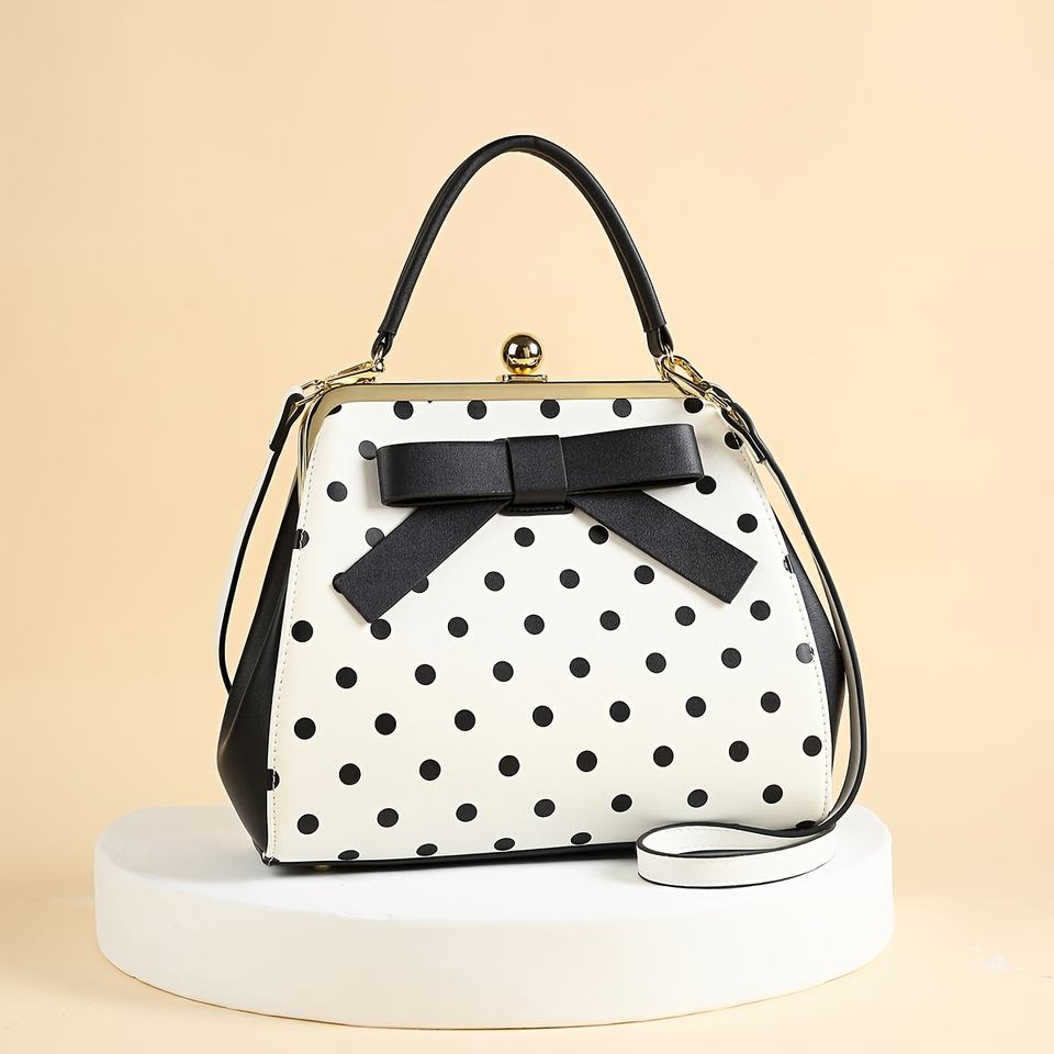Borsa a tracolla da donna Avant Garde con fiocco abbellito a pois in vernice leggera con cinturino rimovibile
