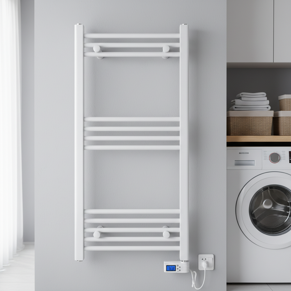 Scaldasalviette Avonflow in Acciaio Dolce con Controllo Smart, Opzione WiFi, Timer Settimanale, Montaggio a Parete per Bagno, Design Moderno