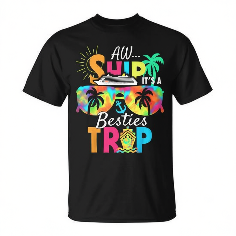 T-Shirt Unisex a Maniche Corte con Stampa Digitale 'Aw Ship It's A Besties Trip 2025 Friends Vacay Cruise' per Adulti