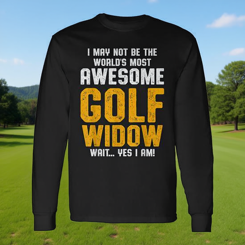 Fantastica maglietta a maniche lunghe da golf per golfista, per moglie o vedova golfista - Prodotto promozionale