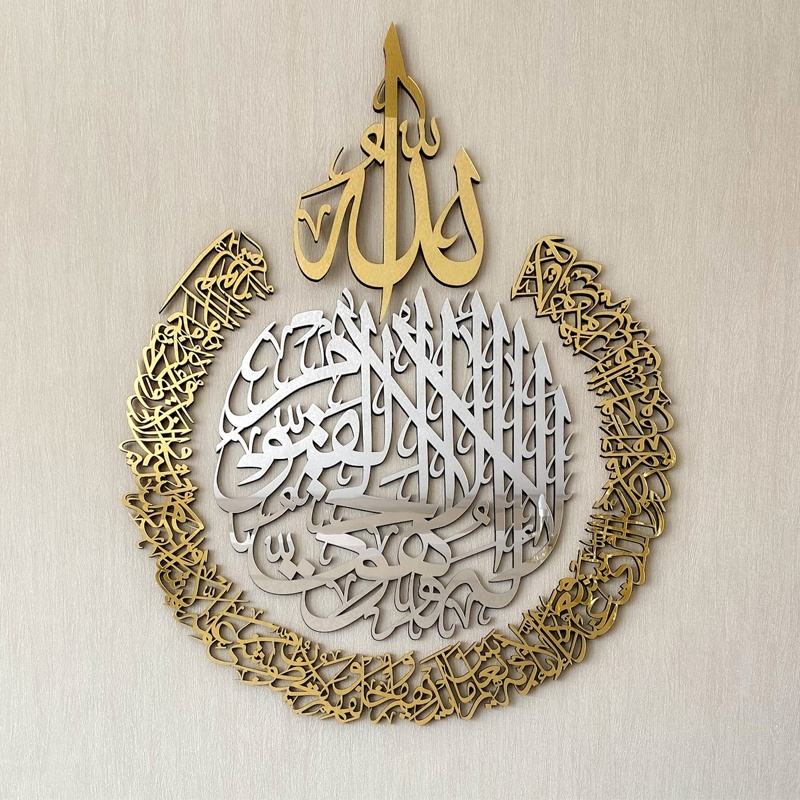Ayatul Kursi Muslim Home Decor Arabic Calligraphy Islamic 3D Metal Wall Art Ramadan Decor Eid Gifts Islamic Metal Decor