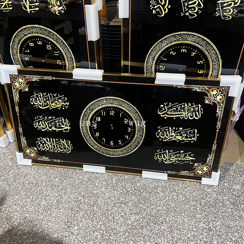 Ayatul Kursi Quran Canvas Painting Muslim Large Size Crystal Porcelain Glass Frame Clock Islamic Calligraphy Arabic Wall Art