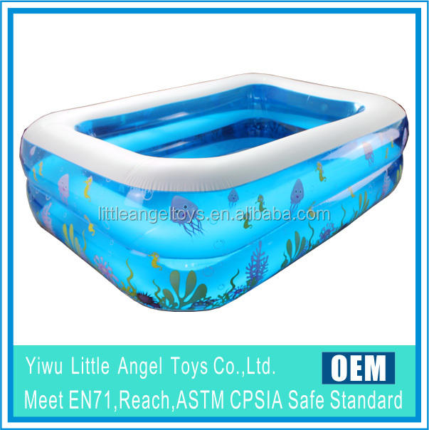 B02 blu PVC portatile gonfiabile rettangolare a tre anelli logo della piscina su misura fondo gonfiabile per cortile esterno