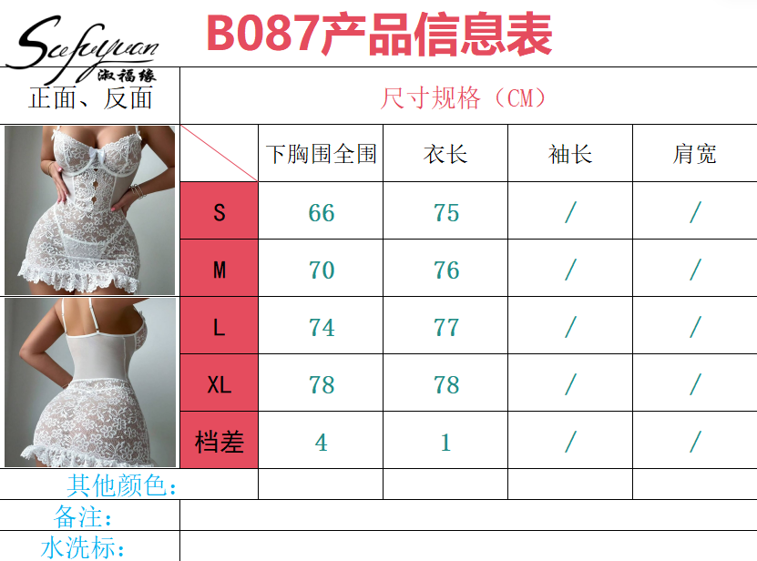 B087 Wholesale Flower Print White Erotic Lingerie Lace See-through Temptation Sexy Women Underwear Pajamas Mesh Dress