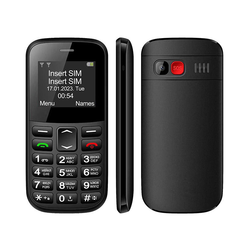 Carta doppia di Sim, Tastiera QWERTY, Font grande, Radio FM senza fili, Pulsante SOS, Dock di ricarica, Torcia elettrica, Numeri di famiglia