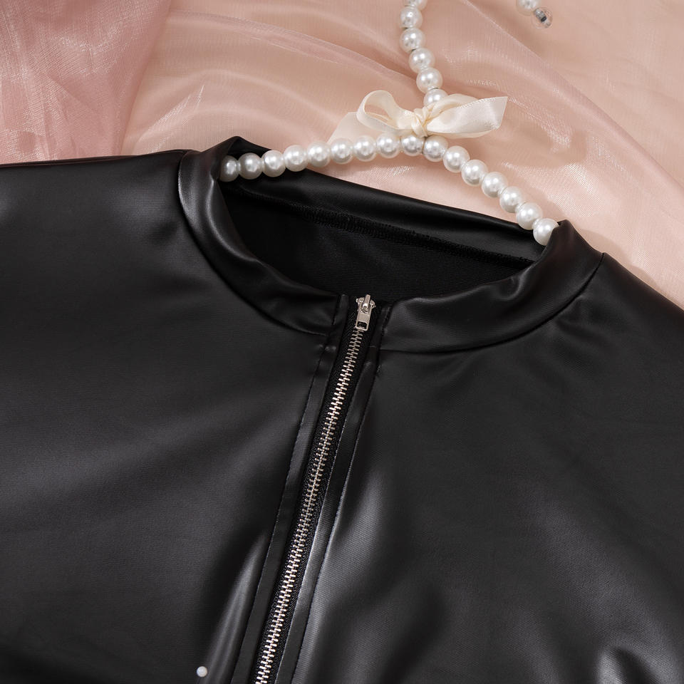 B27374 Hot S to XXXXL Leather Bodysuit Plus Size Fat Women Latex Lingerie With Gloves Black Sexy Fashion Luxury Lingerie Set