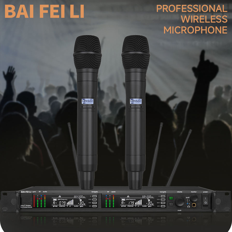 BAIFEILI AXT400 Sistema Microfonico Professionale da Studio con Cuffie, Wireless UHF, Display LED, Illuminazione RGB, Portata 200M, Riduzione del Rumore