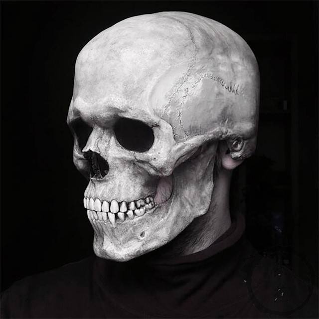 BAIGE Horror maschera a testa intera con teschio a mascella mobile maschera in lattice per spaventosi costumi da Cosplay per adulti realizzati in finta pelle