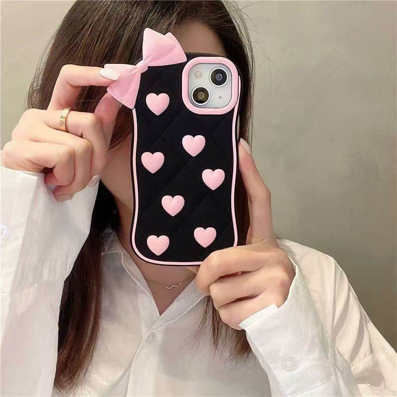Cover Protettiva Antiurto per iPhone 8 XS 11, Stile Ragazza Cartoon Carina 3D Stereoscopica in Silicone Rosa con Fiocco, dalla Fabbrica BAILI