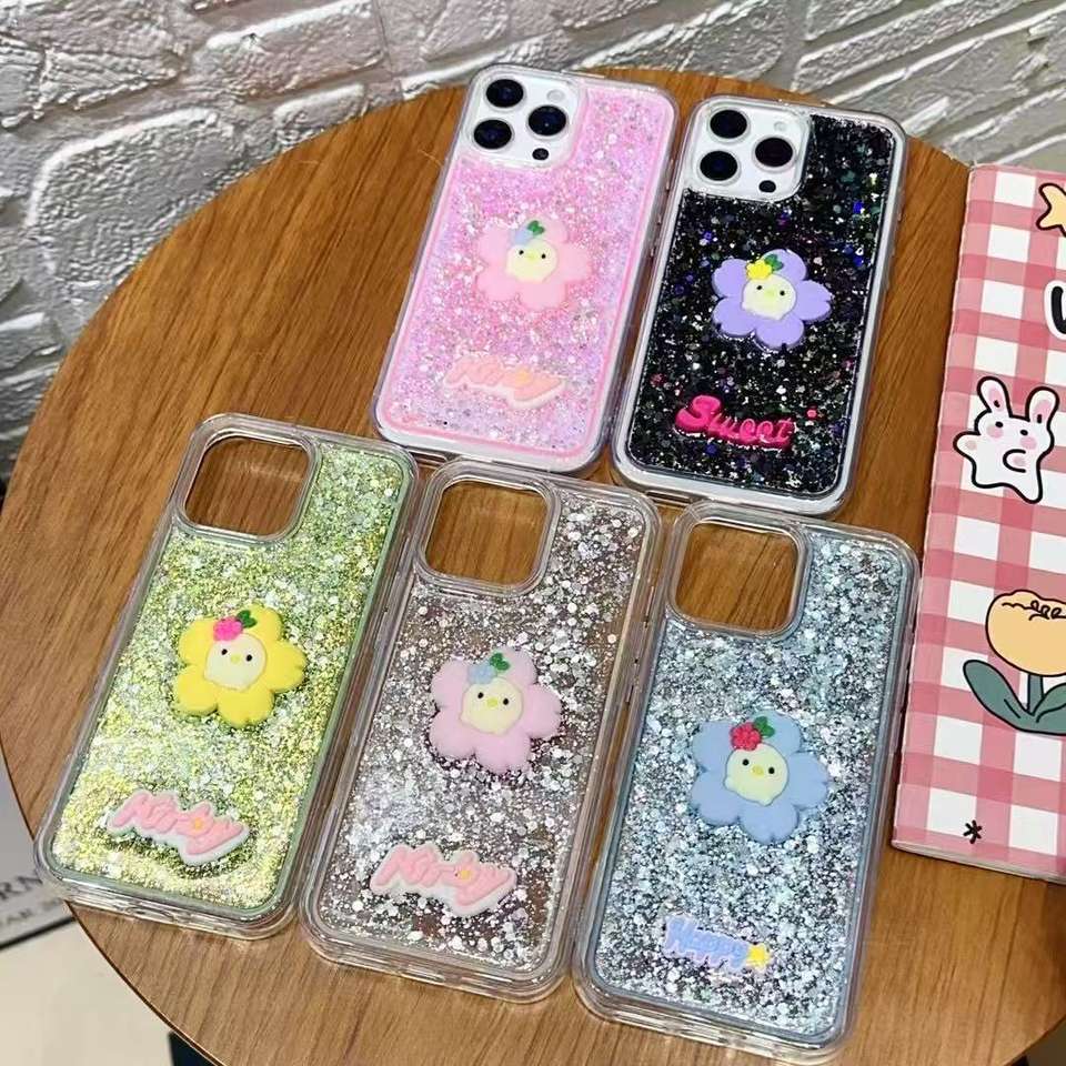 BAILI Factory Little Fresh Ladies Style Resin Drop Glitter Cell Phone case for Iphone 8 Sunflower Sweet Sequin Protective Cover