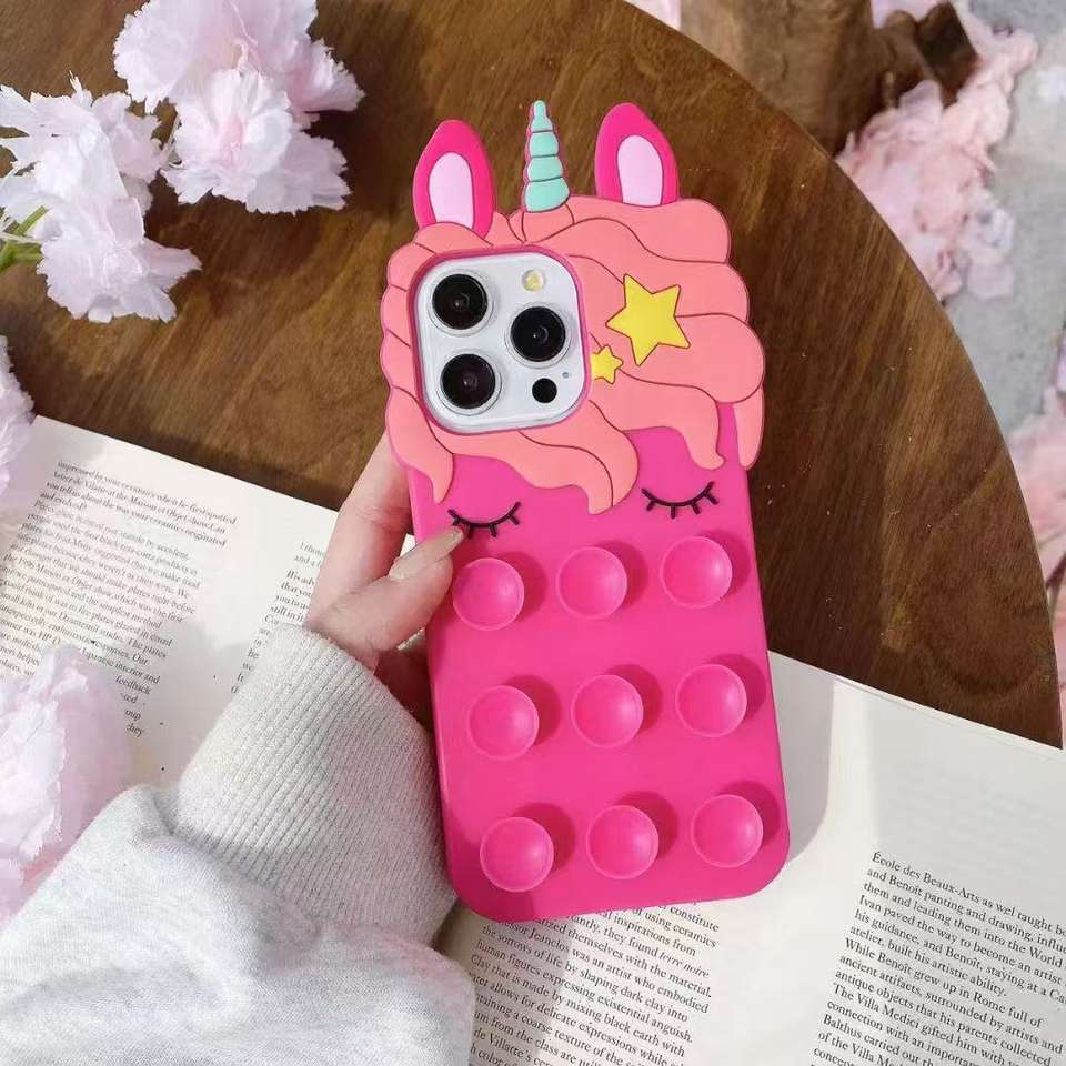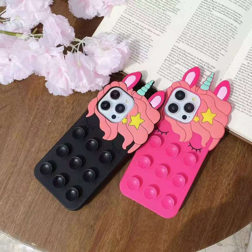 Custodia per Telefono in Silicone BAILI con Disco Unicorno per iPhone 15 Plus 16, Cavallino Arcobaleno, Protezione con Adsorbimento a Mani Libere
