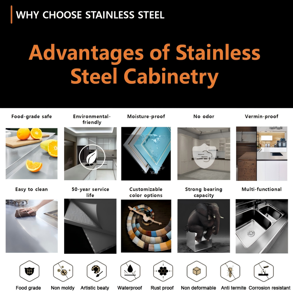 BAINENG Armadio da Cucina Modulare in Acciaio Inossidabile, Armadio Commerciale con Isola Indipendente, Vendita Calda