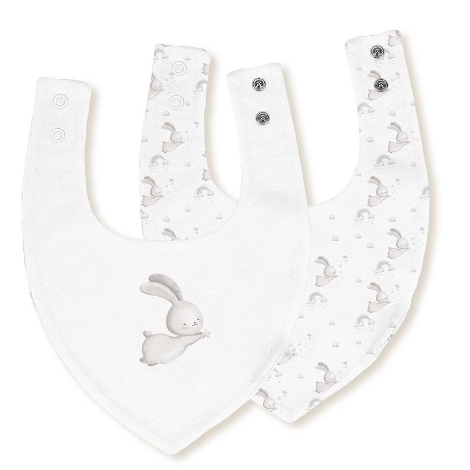 BANDANA BIB (CONFEZIONE 2 UNITÀ)-20X30-MOD. CONEJITO ESTRELLA-W/GRAY Materiale in cotone per fascia d'età 0-12 mesi