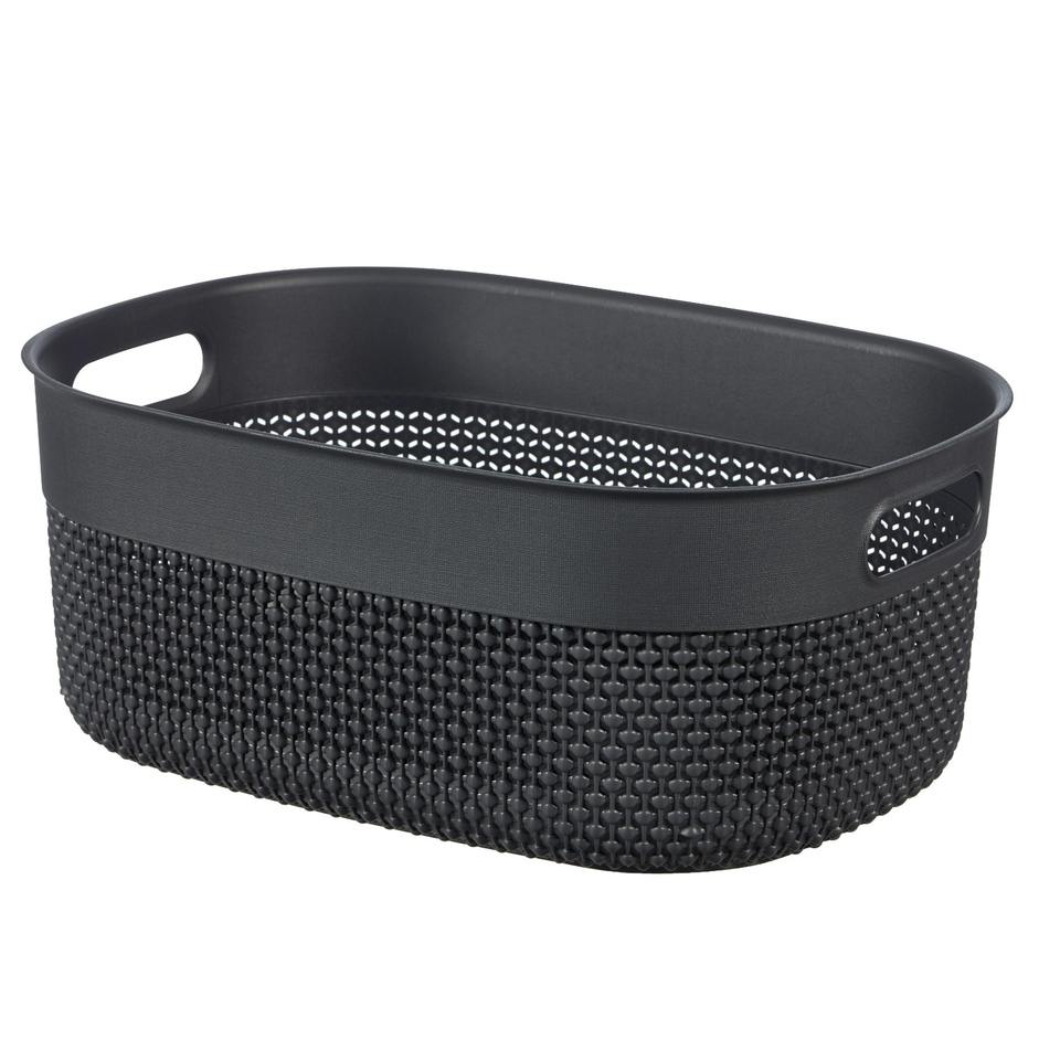 Modern BASKET MOD. FILO M Dark Grey Recycled Plastic Eco-Friendly Storage Basket with Handles 12LT 38X28.5X15CM