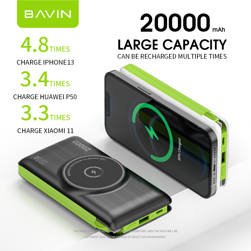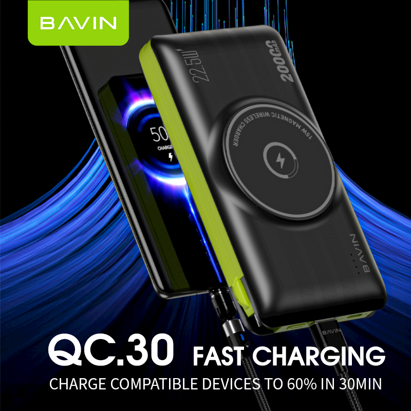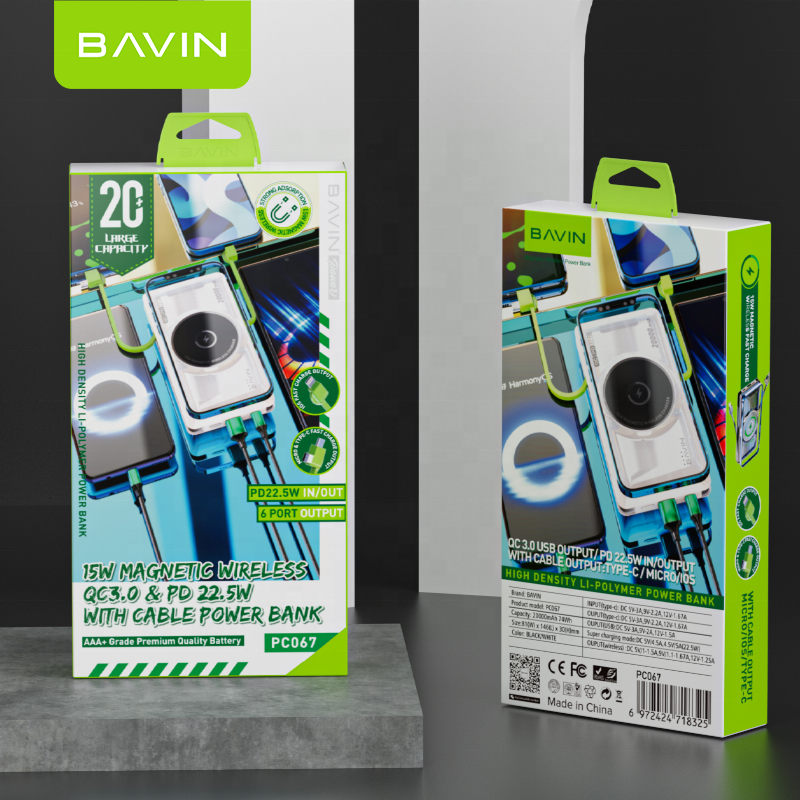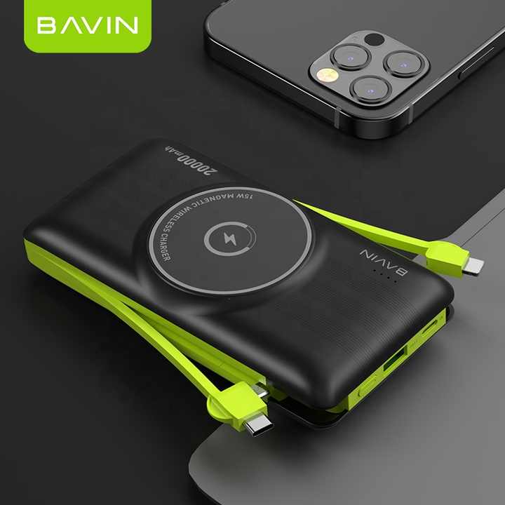 BAVIN Customized 22.5W Powerbank 20000mAh Wireless Fast Charging 20000 Mah Power Bank With Cables for Phone PC067