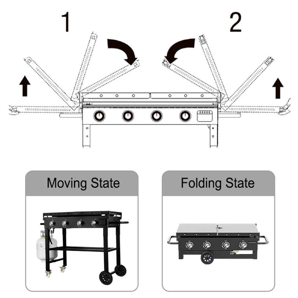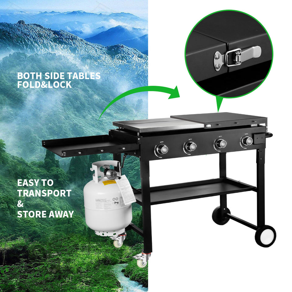 BBQ Gas Stove Cover Energy Saving Flat Tope Grills Outdoor Gas Hob 4 Burner Camping Gas BBQ Grill
