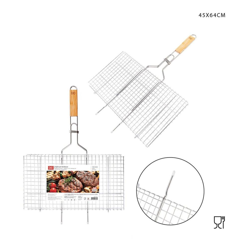 BBQ Grill 45x64 cm with Wooden Handle - Kitchen Utensils