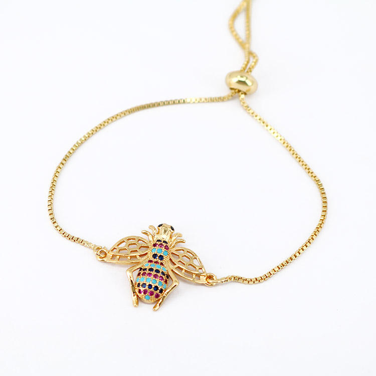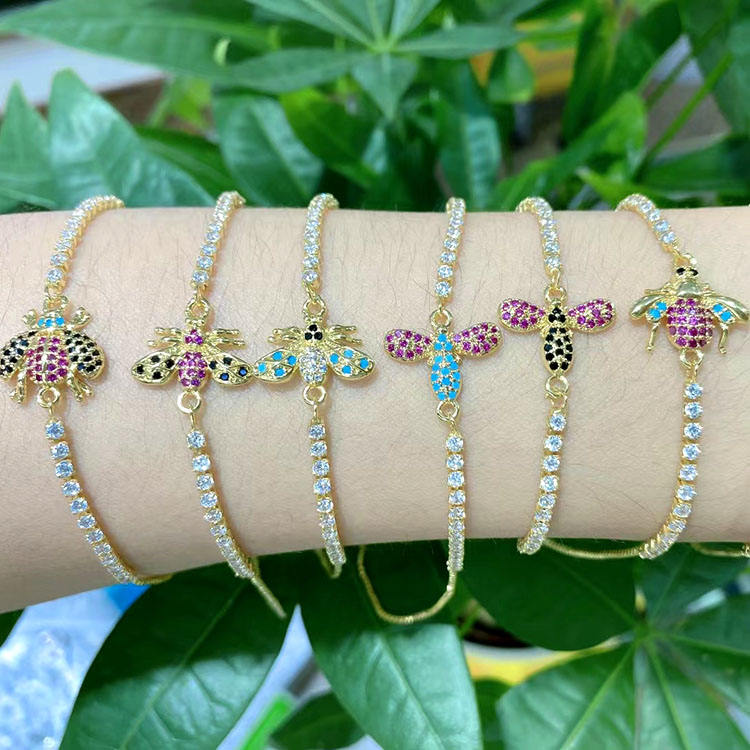 BC1271 bracciali con ciondoli a forma di insetto regolabili alla moda, braccialetti con ciondoli a forma di ape di ragno con Micro pavé di CZ placcati in oro per regali