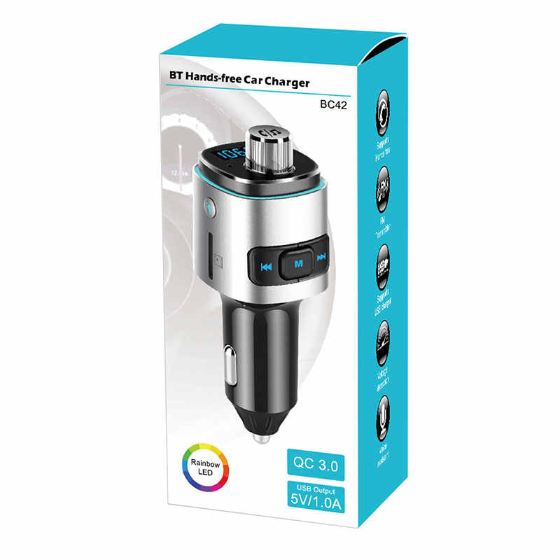 Convertitore Bluetooth BC42 per Auto, Trasmettitore FM Vivavoce, Lettore Musicale per Auto, Caricatore USB per Auto con Doppia Presa QC3.0 a Ricarica Rapida
