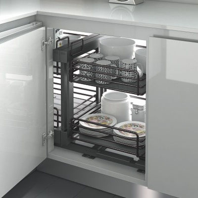 BENE di lusso moderno cromato cucina di stoccaggio solido Base morbida-chiusura corridori regolabile magia angolo tirare cestini