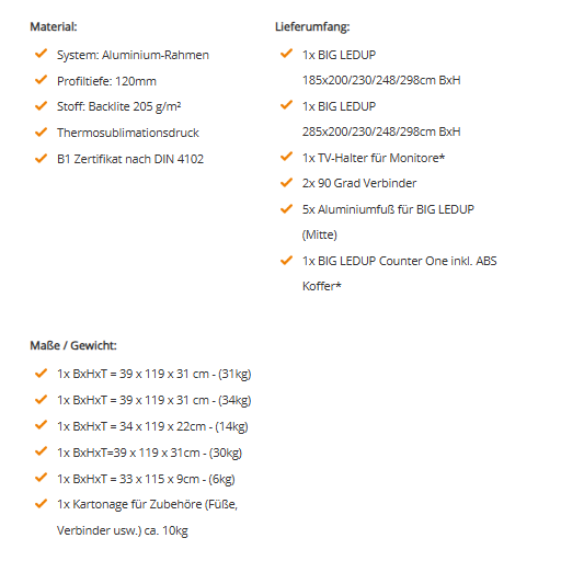 BIG LEDUP Stand Fieristico 3x3 m Infinity stand espositivo LED illuminato modulare espandibile senza attrezzi incluso valigetta