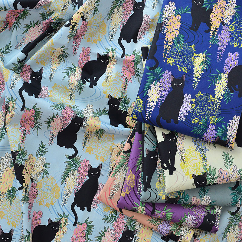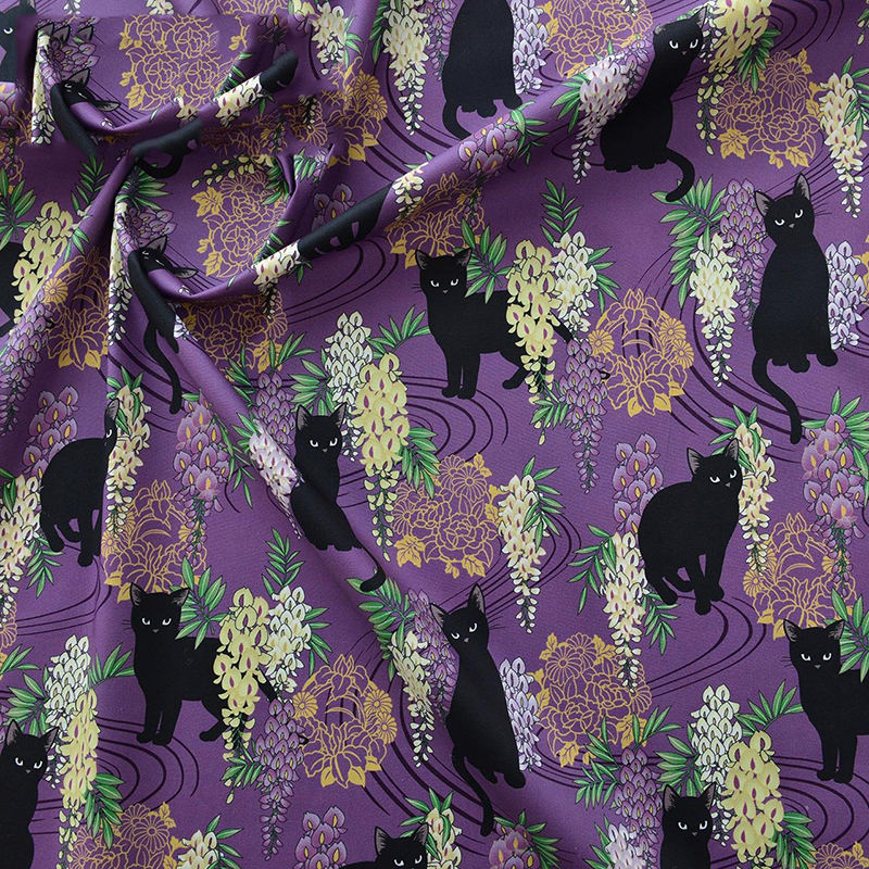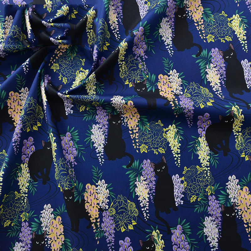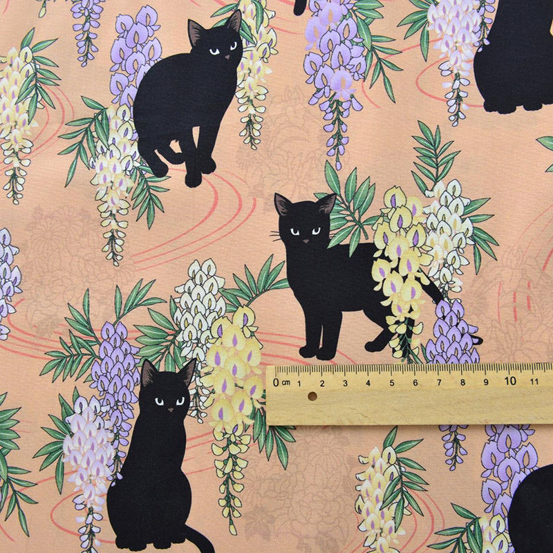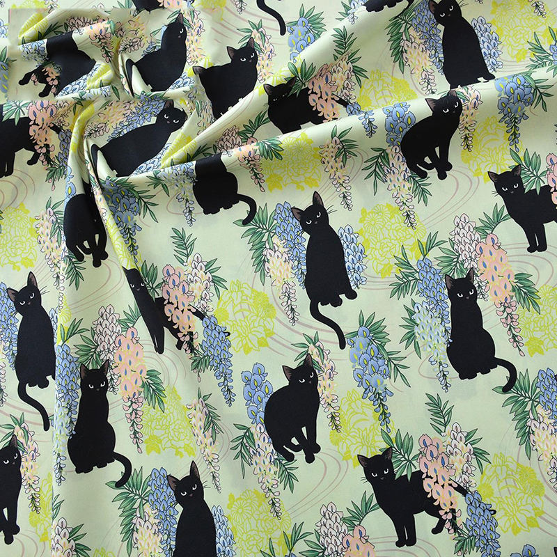 Tessuto BILU di Alta Qualità con Motivo Gatto Nero, 100% Cotone Pettinato 50S, Stampa Digitale per Abiti e Camicie da Donna