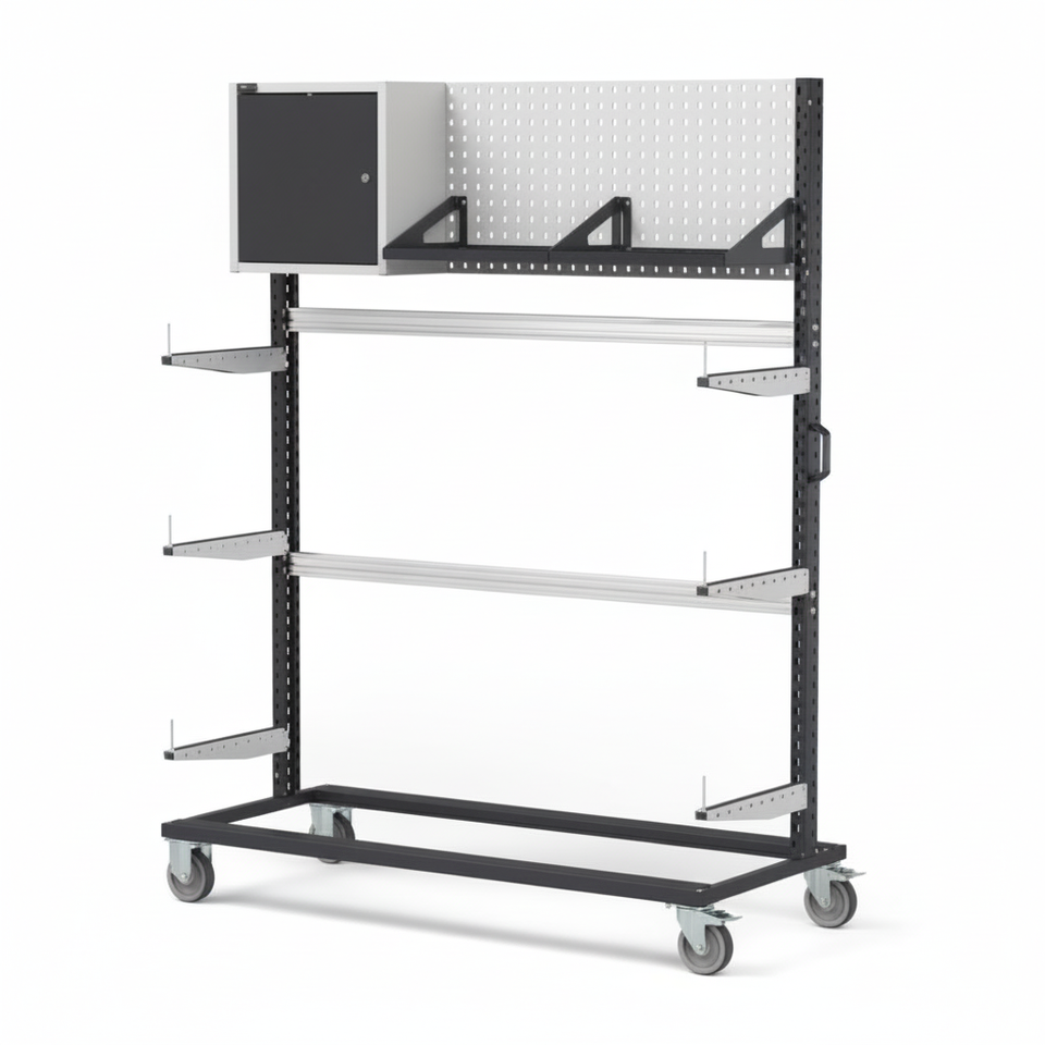 BINCART1506 Anthracite Grey 1552x668x1965mm Wall Mounted Trolley Rack Four-Wheel Perforated Panel Heavy Duty Wheelbarrow OEM