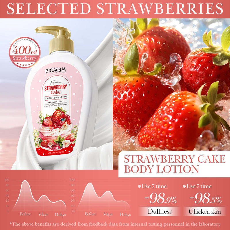 Crema Corpo BIOAOUA Idratante Naturale alla Fragranza di Fragole, Crema Viso e Corpo Sbiancante