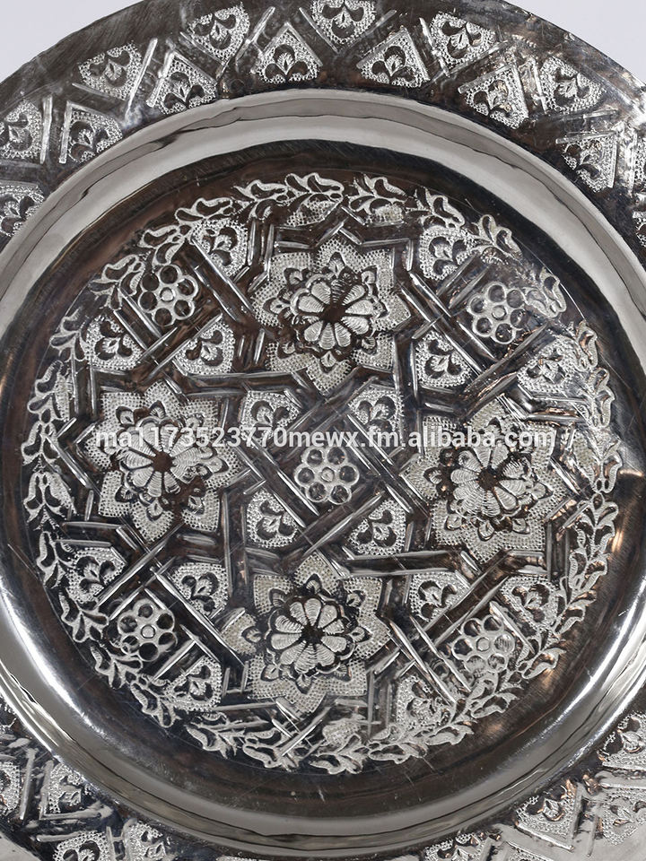 Vassoio Rotondo Marocchino Metallico per Servizi da Tè in Argento Adatto a Tutte le Occasioni Vassoio da Portata Fatto a Mano