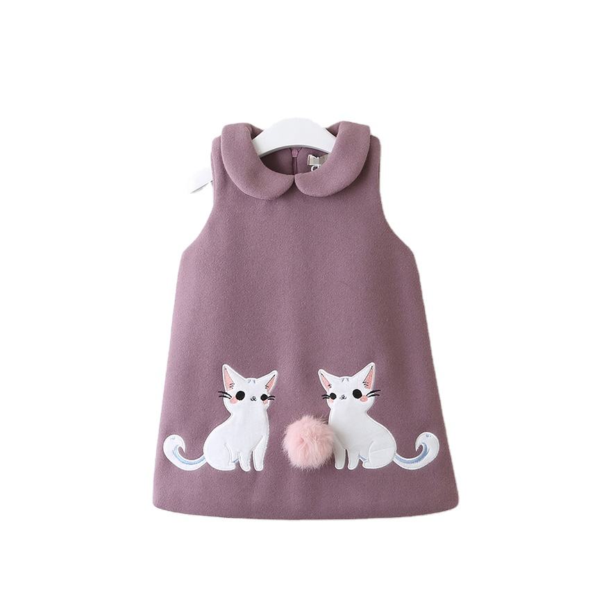 BKD all'ingrosso senza maniche rosso ricamo vestito da gatto per i bambini al ginocchio vestito da festa del bambino con applicazioni per bambini ODM