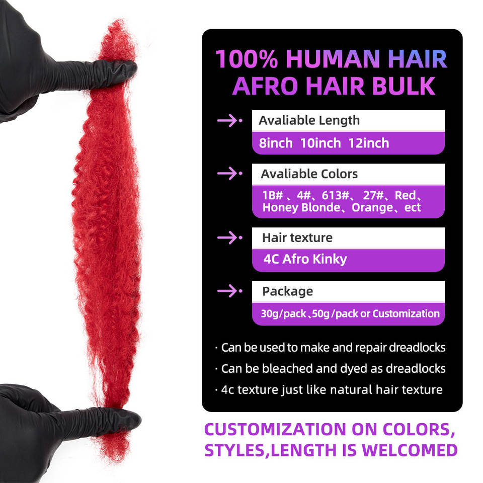 BLT Vendors Price Red Afro Kinky Hair Bulk Afro Curly Human Hair Bulk 100% Raw Human Hair for Locs Extensions