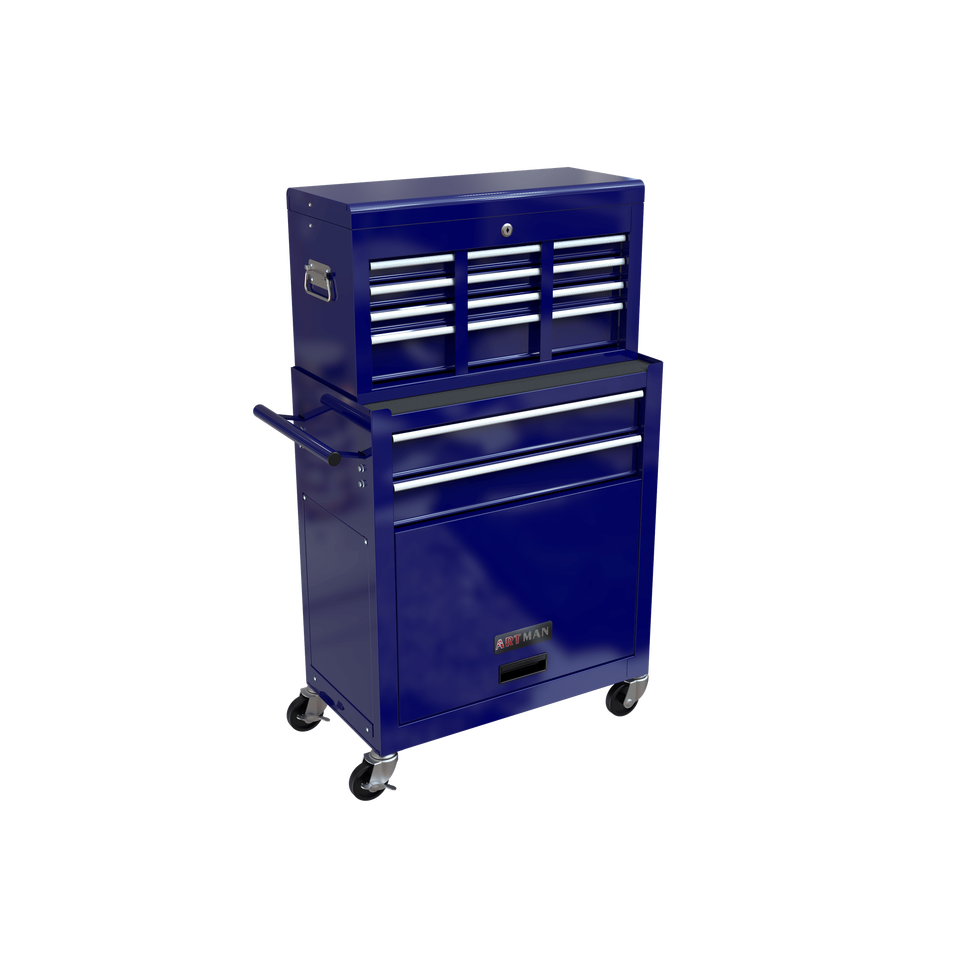 Cassettiera Portautensili Blu a 8 Cassetti con Ruote, Armadio Portautensili ad Alta Capacità