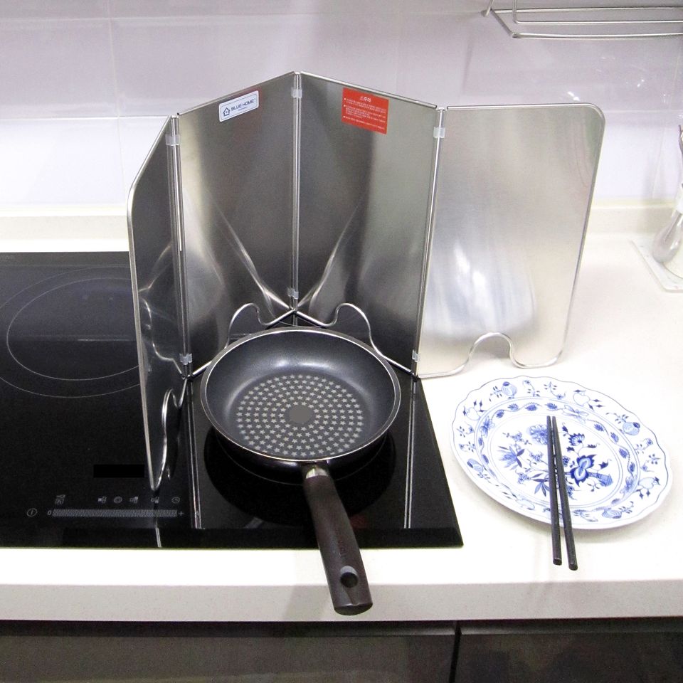 Schermata di grasso blu per la casa 4 lati pieghevole in acciaio inox tipo compatto protezione Splatter per la cottura utensile da cucina