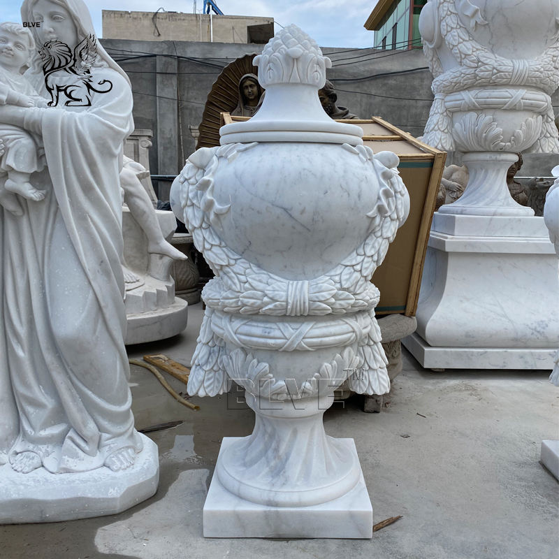 BLVE personalizzato grande vaso di piante in pietra naturale intaglio vaso di fiori da esterno in marmo bianco fioriere