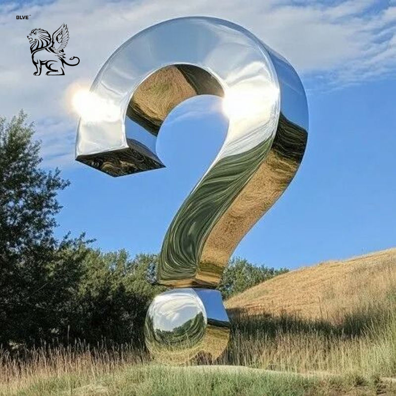 Statua Astratta a Forma di Punto Interrogativo BLVE Personalizzata per Decorazione Esterna, Scultura in Acciaio Inossidabile Lucidato a Specchio