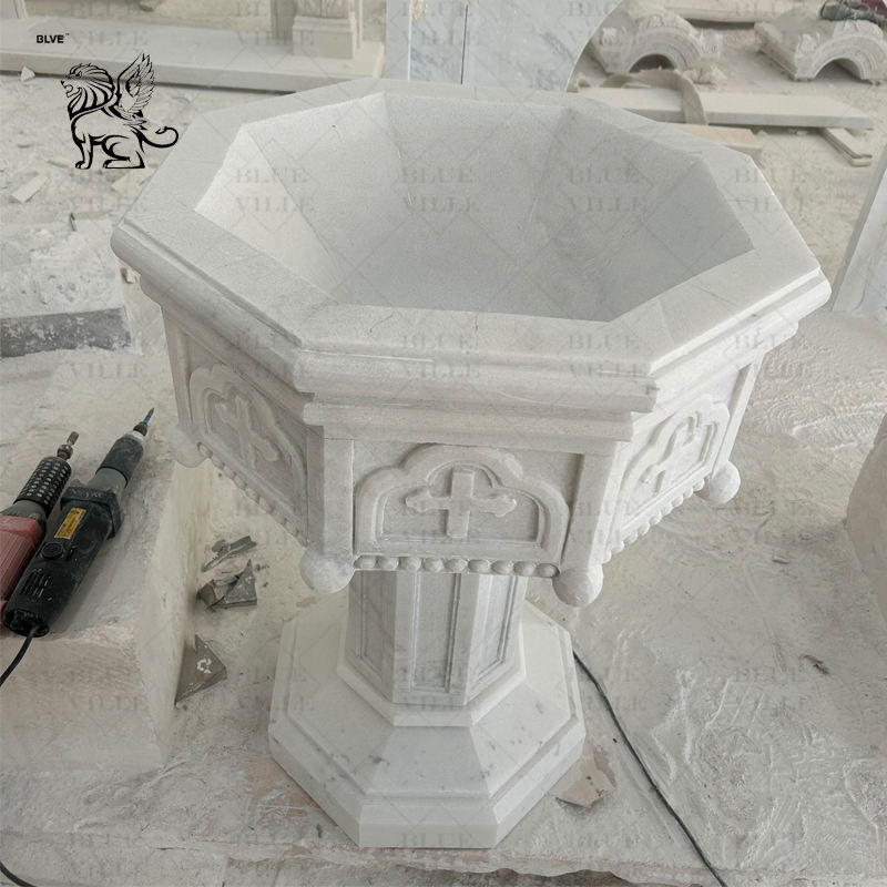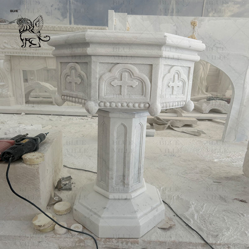 BLVE su misura decorazione religiosa presbiterio scolpito a mano pietra acqua santa fonte marmorea chiesa fonte battesimale