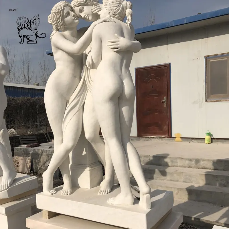 BLVE famoso classico scultura in pietra greca a grandezza naturale donne nude scultura da giardino all'aperto tre grazie statue di marmo