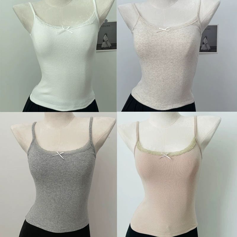 BM Women's Clothing Summer Solid Lace Round Neck Custom Girls Cotton Vest tank Tops Inner Wear Sleeveless tank Top for Women