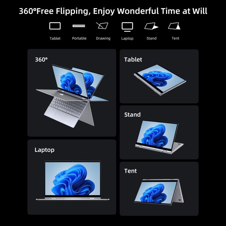 BMAX Y13 Pro Notebook PC 16GB+512GB 13.3 Inch Win 11 Intel Alder Lake N100 360 Degree Shaft Rotation Laptop Tablet